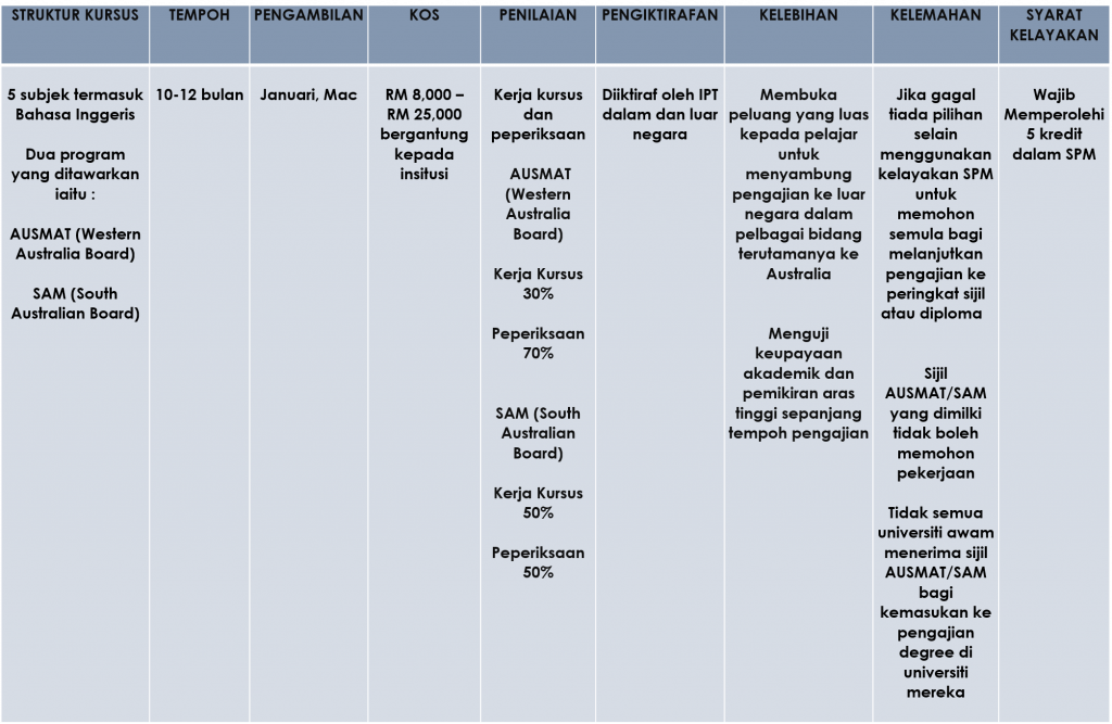 Jika ada yang sudah memilih pun, pastinya tertanya-tanya adakah keputusan SPM yang diperolehi memenuhi syarat kelayakan yag ditetapkan, adakah laluan tersebut akan memperolehi ijazah dengan cepat (fast-track), bagaimana dengan kos pengajian, apakah kelebihan dan risikonya, dari segi pengiktirafan bagaimana, struktur pengajian? serta pelbagai persoalan lagi.
