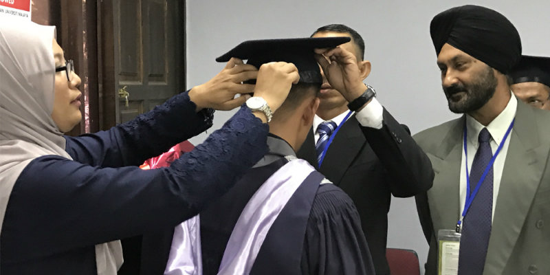 Banduan yang berusia 30 tahun itu dengan seorang lagi banduan dari Penjara Kajang menerima Ijazah Sarjana dalam bidang yang sama pada majlis Konvokesyen Open University Malaysia (OUM) kali ke-20 yang berlangsung di Dewan Canselor Universiti Malaya. Majlis konvenkesyen mereka turut diiringi oleh pegawai dari penjara dan Kementerian Dalam Negeri.