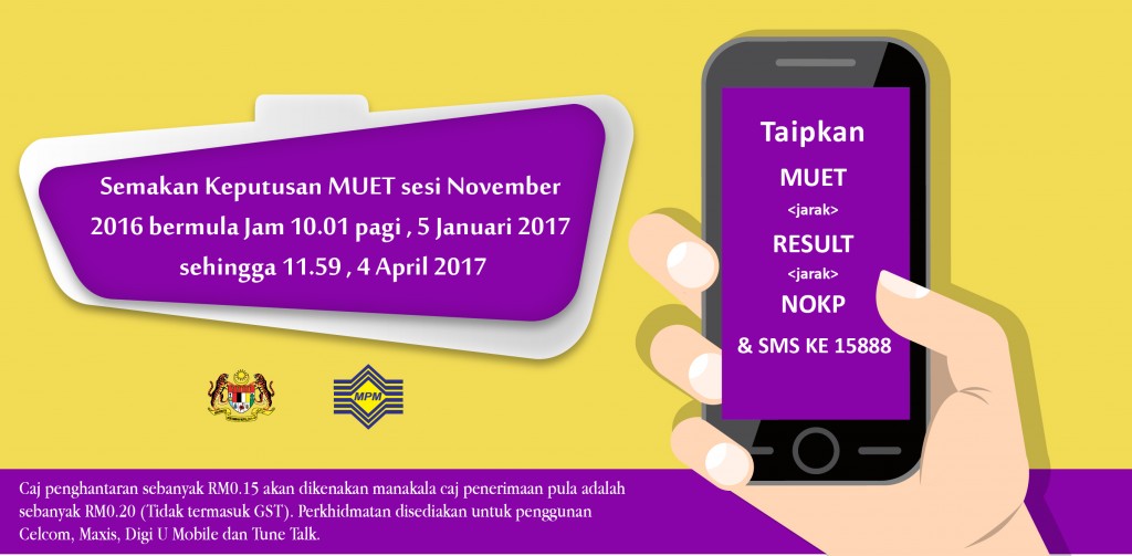 Jom Buat Semakan Keputusan MUET November 2016 Anda | Bagi calon-calon yang telah menduduki peperiksaan MUET pada bulan November 2016, anda boleh mula membuat semakan pada bulan Januari 2017. Keputusan MUET anda boleh disemak secara online ataupun SMS.